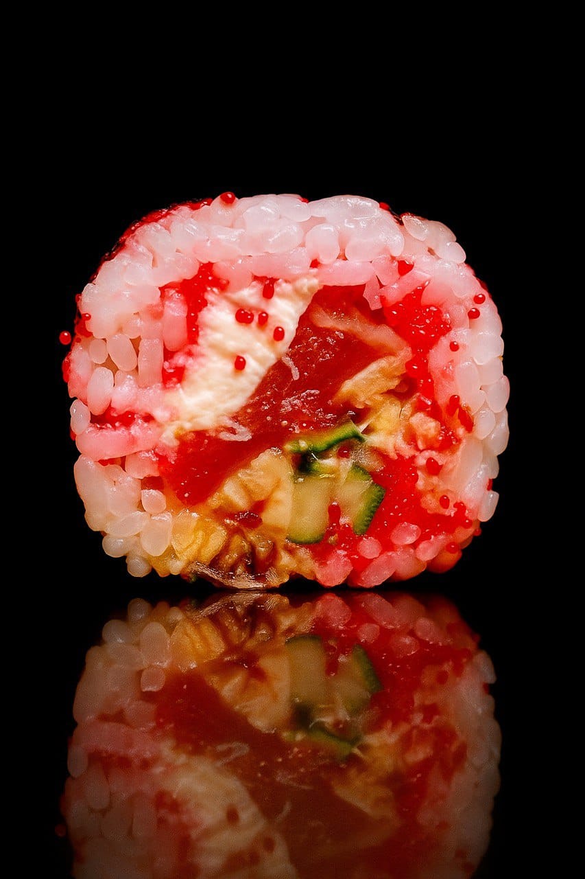 Этот ролл — как извержение вкусов: мощный, насыщенный и горячий. Лосось, угорь, сыр, икра и свежий огурец — в этом миксе каждый ингредиент звучит громко. Он создан для тех, кто любит роллы с характером и не боится сильных, ярких ощущений.